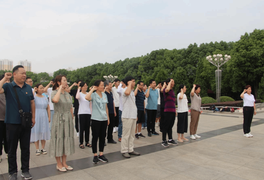 在黄麻起义和鄂豫皖苏区革命烈士纪念碑前,全体党员向烈士纪念碑深深三鞠躬,表达对烈士的崇敬和缅怀。