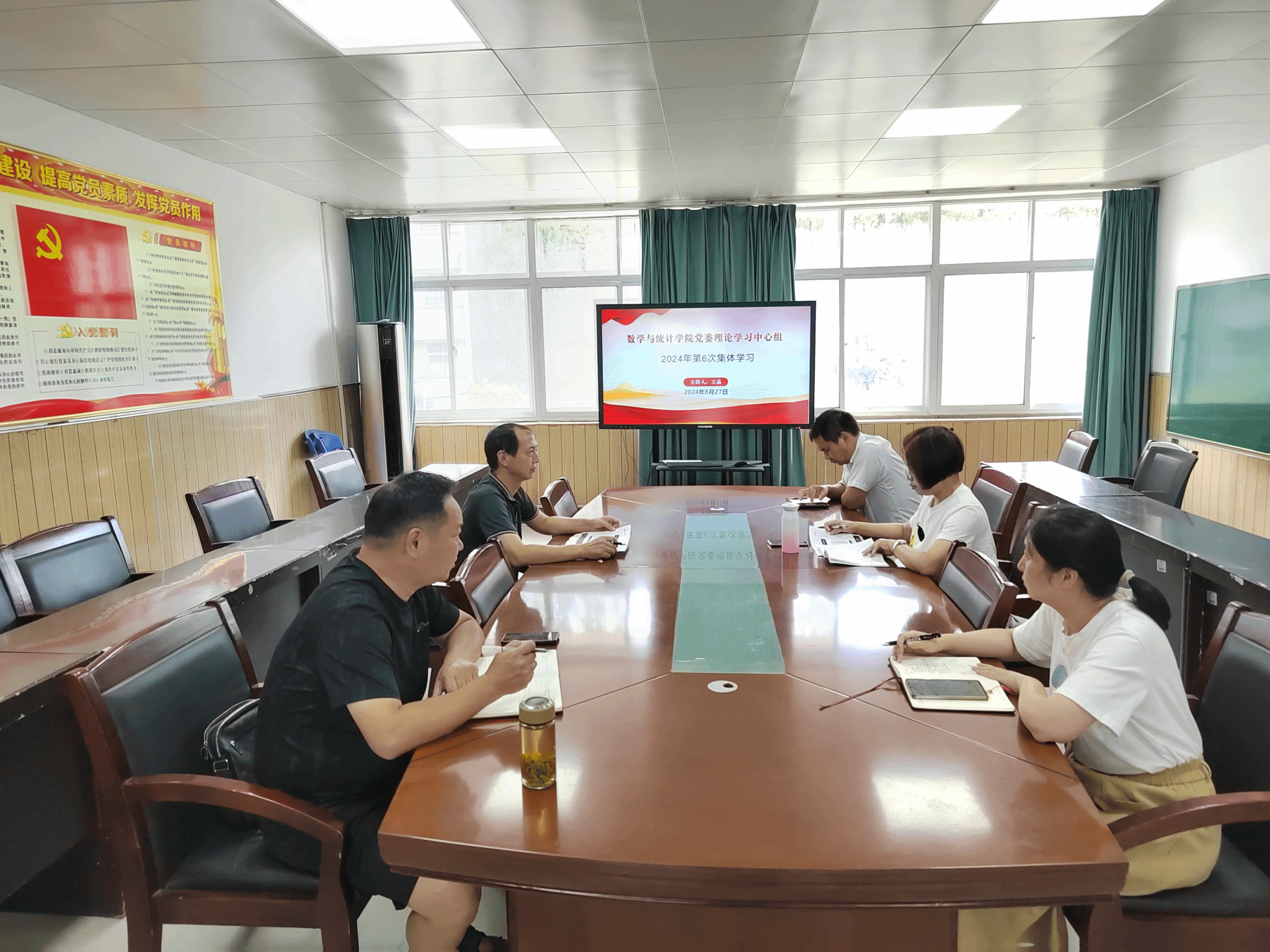 8月27日下午,我院党委理论学习中心组在学院二楼会议室举行2024年第6次集体学习。全体党委委员参加会议,院党委书记王晶主持会议。
