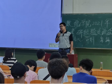 会上,艾书记首先回顾了数统学院近年考研总体情况,强调此次交流会主要目的是进一步提高我院学生的考研热情,明确考研目标,掌握考研技巧,增强考研信心。希望同学们认真聆听,随后介绍了参加本次分享考研经验的六位学生代表。