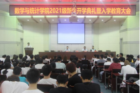 院长胡付高代表数统学院向来自全国各地的2021级新同学们表示热烈的欢迎,他介绍了学院的办学历史和取得的成绩与荣誉,向全体新生提出了殷切期望:一是先学会做人,再学会做事;二是胸怀目标,心怀理想;三是追求个性发展,尽快融入团队;四是学会自我管理,勇于担当;五是加强锻炼,主动学习。