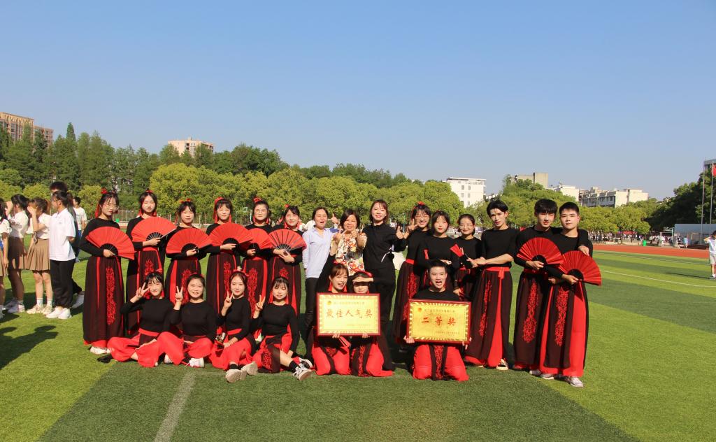 我院健身操代表队由4位男生和16位女生组成,分团委书记郑放老师也参与其中。他们经过一个月的艰苦训练,最终在比赛中用实力征服了评委,赢得了在场观众的阵阵掌声,以91.6的高分荣获二等奖与“最佳人气奖”。