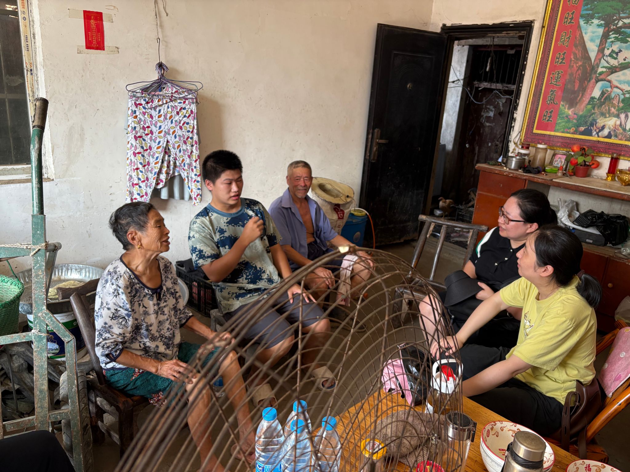 家访团队首先来到了位于农村的武同学家中,该同学家庭经济条件较为拮据,父母常年在外务工,日常由在家务农的爷爷奶奶照料。暑期期间,武同学除了完成学习任务,还会主动帮助年迈的爷爷奶奶分担部分农活,展现了孝顺和勤劳的品质。然而,老师们也了解到,该生性格较为内向,不善于与人沟通,社交范围较窄,平时多独来独往。副书记和老师们对此表示了深切关心,与家长沟通了情况,鼓励武同学在校期间多参加集体活动,勇敢迈出交流的步伐,不断提升综合能力。学院也表示将在今后提供更多样的平台和机会,帮助其融入集体,改善沟通状况。同时,副书记仔细询问了其家庭面临的实际困难,并介绍了学校的各项资助政策,表示将尽力提供必要的支持。