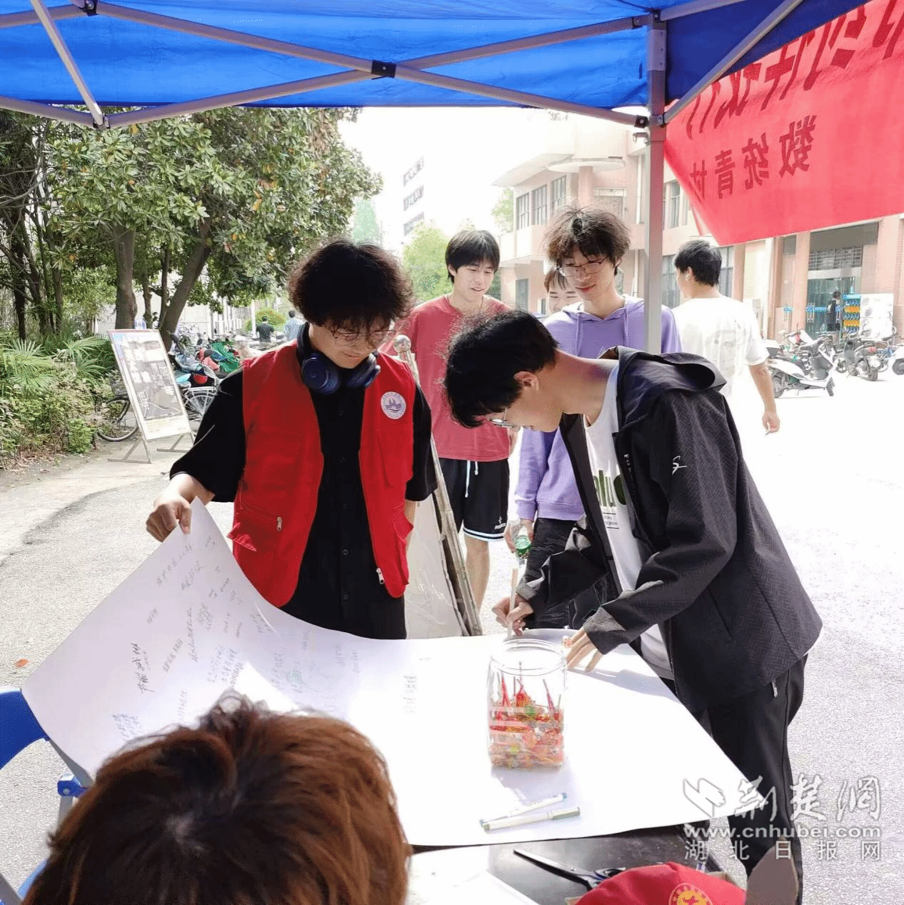 在环境保护工作站,工作人员准备了环保知识小问题,回答正确的同学可以获得一份精美的手工作品,并号召参与活动的同学写下保护环境小建议,呼吁大家从身边的点滴小事做起,用心呵护“地球母亲”。