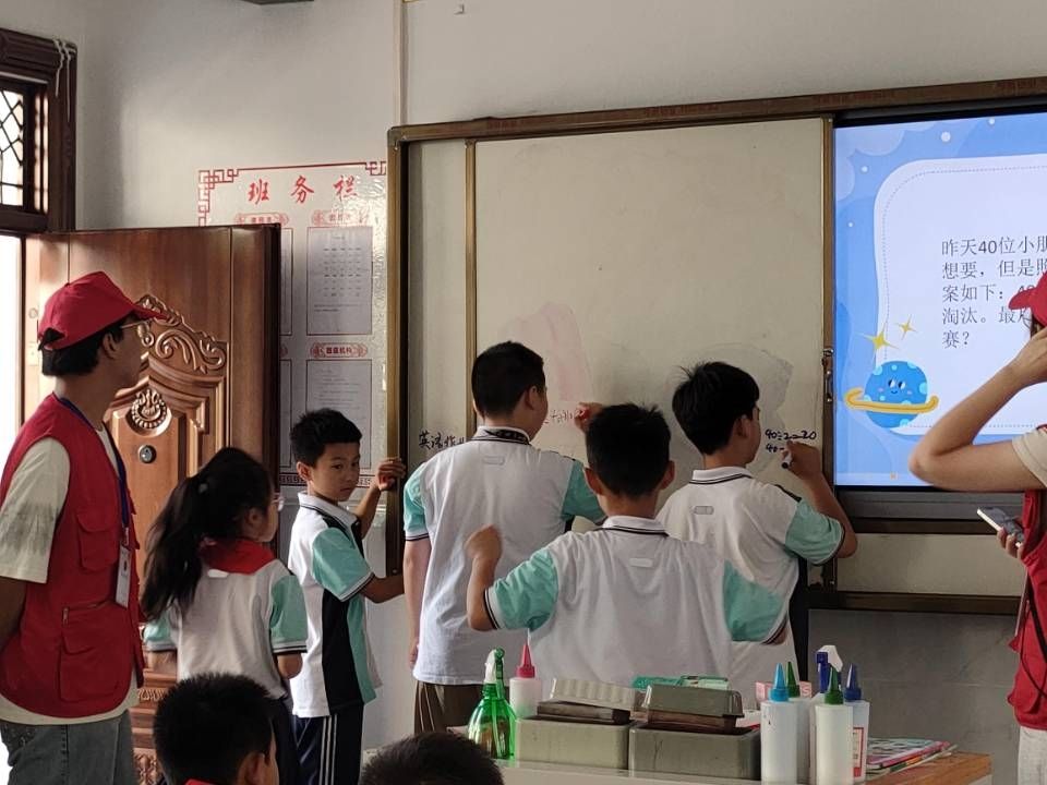 活动现场,数统学院青协的青年志愿者们精心准备,为孩子们讲授有趣的数学知识,还组织了丰富多样的数学游戏。课堂上,孩子们积极思考,踊跃回答问题,展现出对数学的浓厚兴趣和无限潜力。对于积极回答的学生,志愿者们还送上了精心准备的小奖品,进一步激发了孩子们的参与热情。