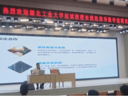 当日下午14时,在美术楼报告厅,赵斌教授为我校师生带来了一场主题为“创新人才培养及国赛准备”的数学建模专题报告。此次报告由副院长朱三元主持致辞及介绍。朱院长首先对赵斌教授的到来表示了热烈的欢迎,并简要介绍了赵教授在数学建模领域的杰出成就与贡献。