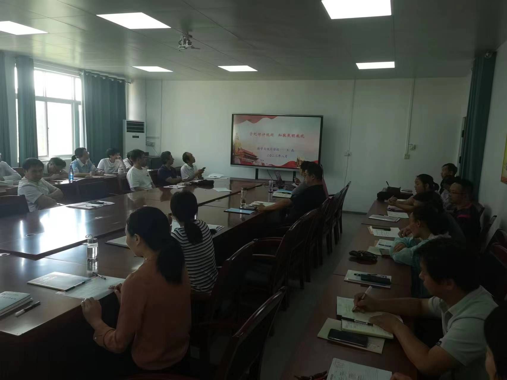 为切实加强师德师风及纪律教育,推进学校党风廉政建设工作,营造风清气正的教育发展环境。8月29日下午,数统学院开展新学期“师德师风 警示教育”专题教育学习活动,引导广大教职员工严明政治纪律、坚守教育初心、践行育人使命、铸就高尚师魂,全面提升政治素养和师德涵养。学习活动由党委书记王晶主持。