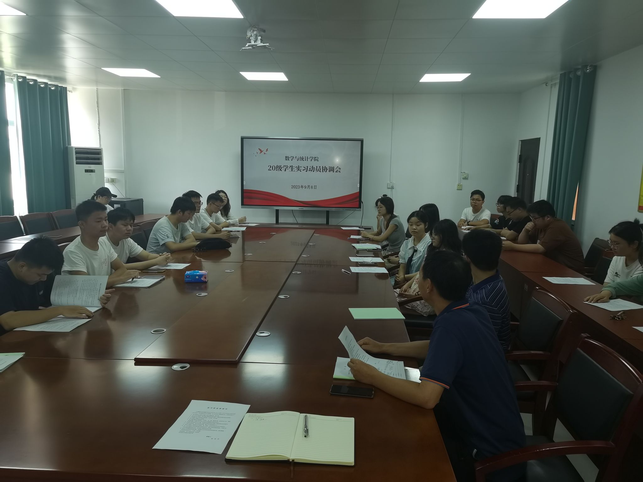 为确保实习工作顺利开展,引导同学们做好实习前的各项准备,近日,tyc7111cc太阳成集团2020级数学与应用数学专业实习动员大会在院会议室举行。副院长潘保国、20级应数班班主任吕登峰出席了此次动员大会,办公室主任陈明主持会议。2020级全体实习学生参会。