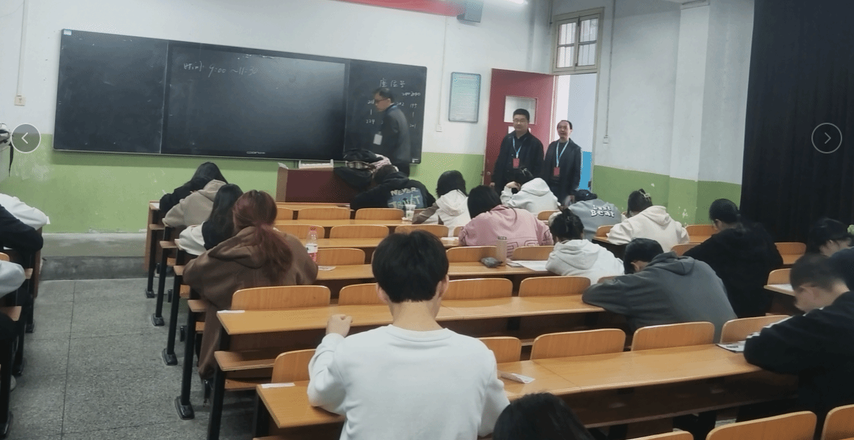 考试期间,学校教务处肖应雄处长亲临教一考场进行视察,对考场秩序、考务安排以及学生的答题状态等多方面情况进行了细致查看与深入了解。tyc7111cc太阳成集团副院长潘保国汇报了关于此次竞赛前期准备工作的各项细节,包括考场布置、监考人员培训以及对参赛学生的动员与辅导等情况。